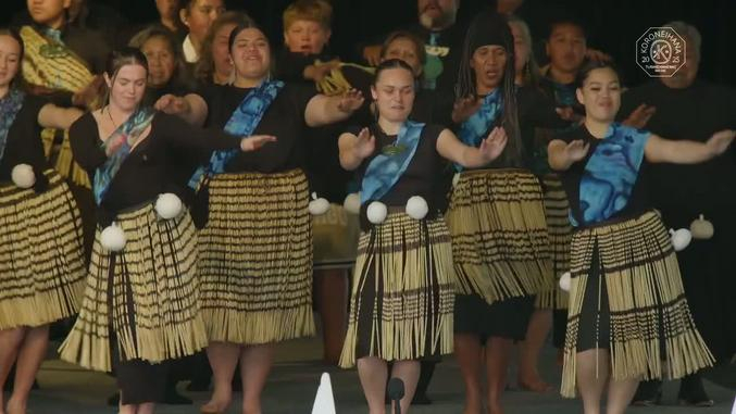 Ce qui m'étonne et m’enthousiasme, c'est de voir au milieu de cette belle réunion de chanteuses-danseuse natives, quelques types "caucasiens" qui ont l'air d'avoir parfaitement intégré la culture maorie. Je l'ai remarqué sur d'autres vidéos de hakas, en particulier, expression qui semble très commune, que ce soit pour une remise de diplômes où pour exprimer sa contestation au Parlement !