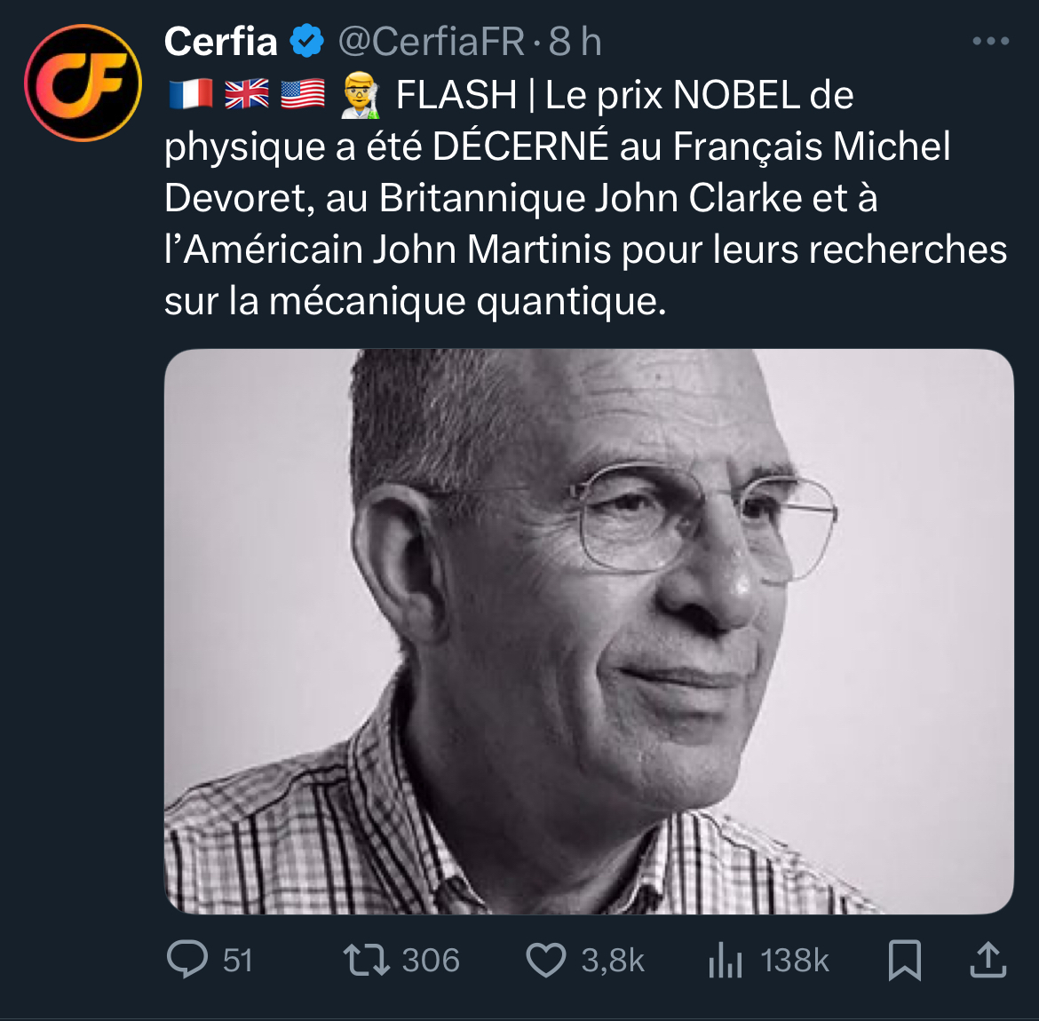C’est important, car cela permet de fabriquer et contrôler la matière selon les règles quantiques, et pas seulement de l’observer. Concrètement, cette découverte sert aujourd’hui à construire les ordinateurs quantiques, des machines capables de résoudre en quelques secondes des calculs qui prendraient des années à un ordinateur normal. Elle servira aussi à créer des capteurs ultra précis, capables de détecter des champs magnétiques, de mesurer la gravité ou de naviguer sans GPS. Bref, Michel Devoret a rendu le monde quantique utilisable, pas seulement théorique.