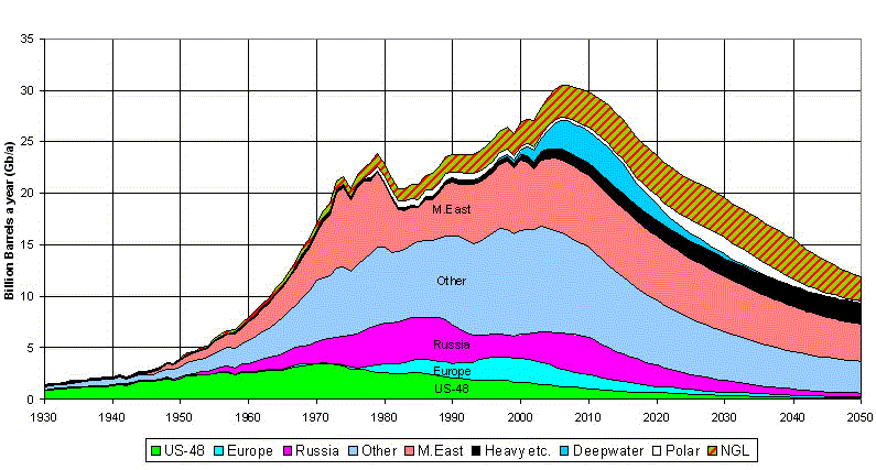 Bon, cette image date de 2005, il doit y avoir quelques ajustements; prod prévue mondiale de pétrole. En théorie, on le connaitra de notre vivant, ce moment fatidique où les pays se foutrons sur la gueule pour les miettes.