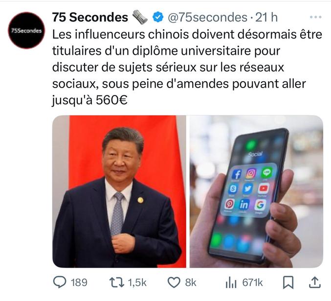 En fouillant un peu plus, il existe à priori qque chose ici https://www.gov...ent_5707286.htm mais ça date de 2022 pas d'octobre 2025 et ça ressemble plus à des directives qu'à une loi, mais je connais pas le système législatif Chinois donc bon