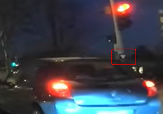 Alors non, à 1:01 on voit bien qu'il y a un feu pour vélo qui se met au vert et l'entoure lui même d'un rond blanc et explique pourquoi il double et passe.
