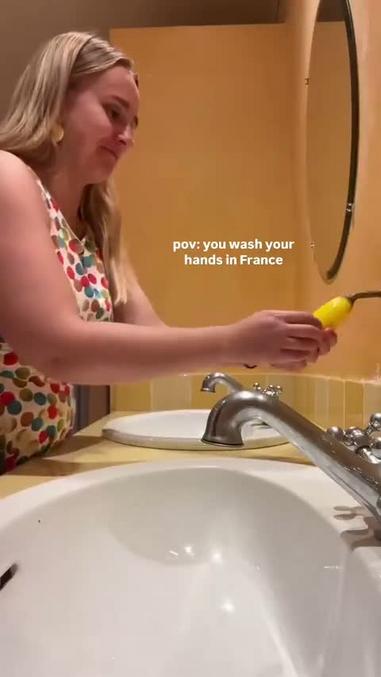 Cela dit comme évoqué par un peu tout le monde... pas sûr que cette vidéo soit en France... la dernière fois que j'ai vu ce genre de savon, c'est en école primaire... voire la maternelle. Aujourd’hui, ce sont des distributeurs typique "mentalité capitaliste" où on te dit que "juste une pression suffit"... Où t'as juste le droit à une mousse composée à 99,9% d'air...