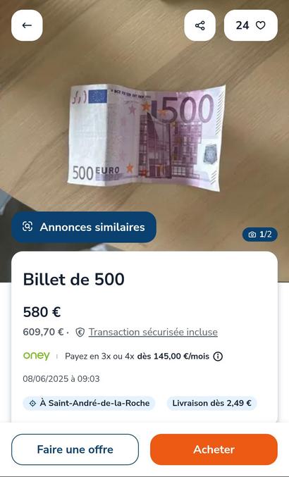 Dans le millieu de la pègre c'est très courant de vendre des billets de 500 plus cher, contre des petites coupures. Se balader avec un million d'euros en billets de 10 c'est compliqué...