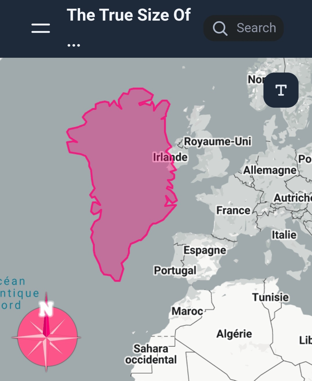 Petit exemple : ils auraient pu mettre les 2 cote a cote pour se rendre compte de la différence réelle de superficie du Groenland est plus ce 3 fois supérieure à celle de la France.