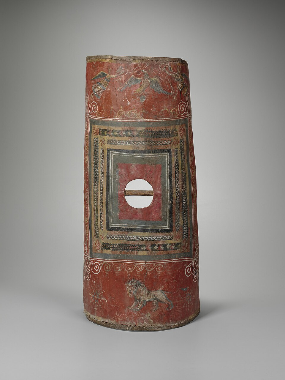 Info supplémentaire, on est pas tout a fait sur que celui-ci est été utilisé par un légionnaire, l'hypothèse d'un mercenaire est envisagé. Toutefois, sa conception correspond tout a fait a celle décrite pour les scutum Romain, et les composant ( bois ) ne proviens pas de la région ou il a été trouvé.