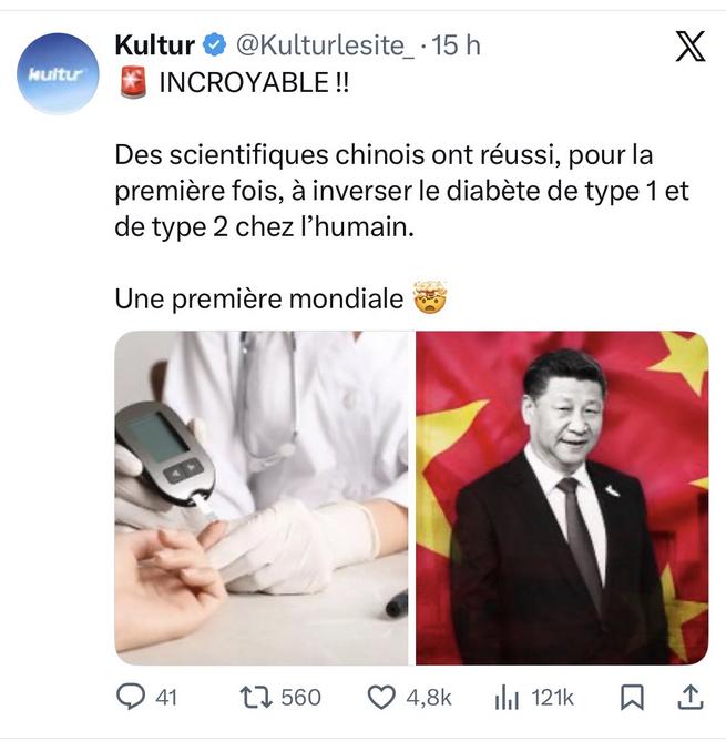 L’annonce est probablement basée sur une avancée réelle en Chine, très probablement dans le domaine des cellules souches capables de produire de l’insuline chez des patients atteints de diabète de type 1, ou sur des protocoles intensifs ayant permis une rémission prolongée chez certains patients atteints de type 2. Ce que ces chercheurs auraient réussi, et qui est effectivement important, c’est d’obtenir chez un nombre très limité de patients une production d’insuline suffisante pour réduire voire suspendre temporairement les injections, ce qui n’avait jusqu’ici été observé que de manière partielle ou peu durable. Cependant, parler “d’inversion” ou de “guérison” est excessif : pour le type 1, la cause auto-immune n’est pas supprimée, et pour le type 2, la rémission existe déjà dans certaines conditions (perte de poids majeure, chirurgie bariatrique, nouveaux traitements). L’aspect potentiellement exceptionnel réside donc dans la méthode biologique utilisée et la durée de l’effet observé, mais il s’agit très probablement d’essais préliminaires sur peu de patients, avec un recul encore limité. Avant toute application en France, il faudrait plusieurs années d’essais cliniques élargis, des validations européennes et une évaluation stricte de la sécurité et du coût.