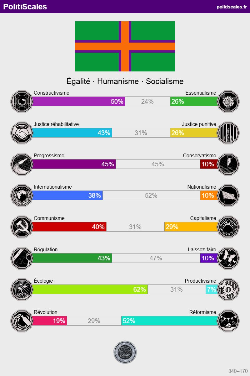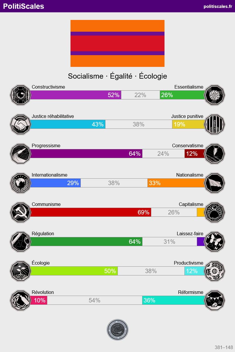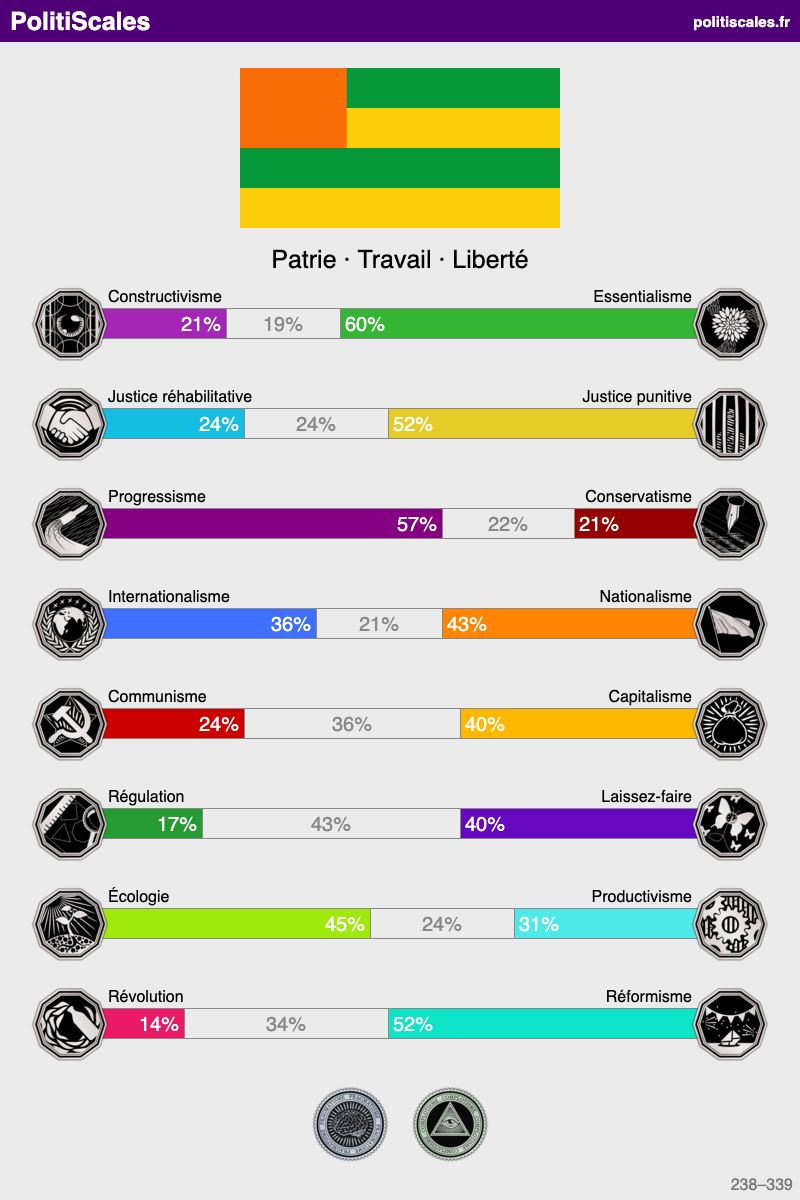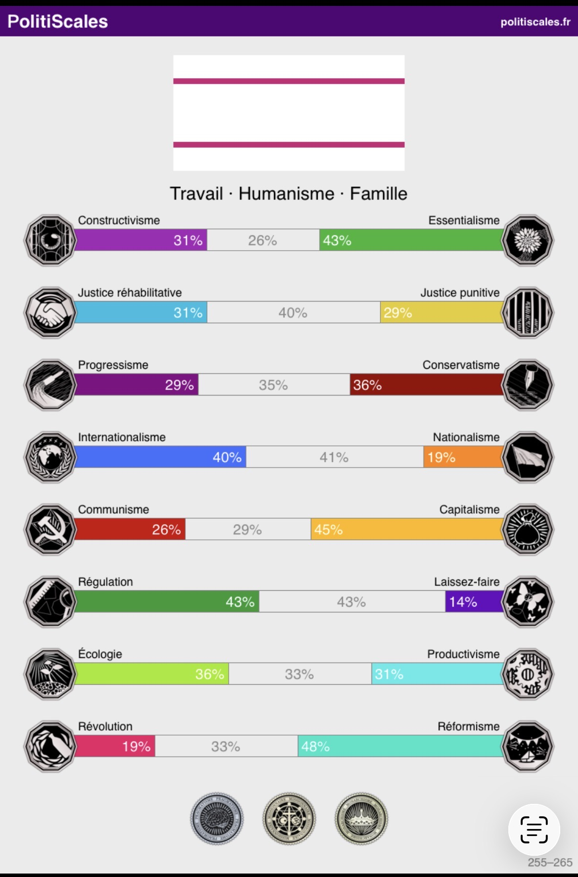 Sur le plan politique, j'ai voulu faire un "test" en répondant à plein de question dans le but de connaitre mon orientation politique.