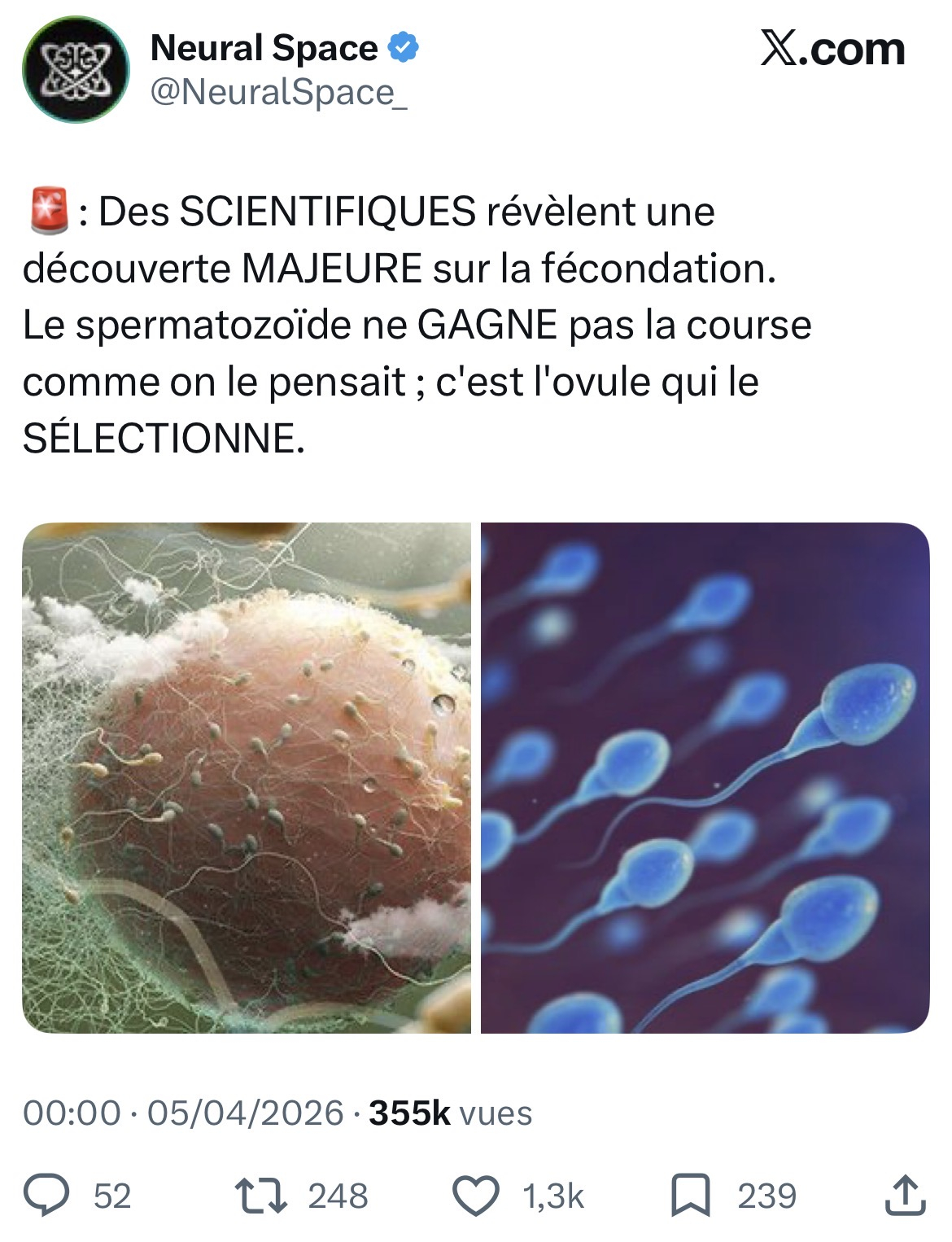 Concrètement, l’ovule ne “voit” pas tous les spermatozoïdes et ne compare pas toute la population : il agit plutôt comme un filtre local. Seuls les spermatozoïdes arrivés à proximité (déjà très sélectionnés par le trajet dans l’appareil reproducteur féminin) sont concernés, et parmi eux, les signaux chimiques et les interactions moléculaires à la surface de l’ovule vont faciliter l’entrée de certains et en bloquer d’autres. Les critères ne sont pas simplement “le plus rapide” ou “le plus fort”, mais incluent l’intégrité de l’ADN, la qualité des protéines de surface, et surtout la compatibilité biochimique avec l’ovule. On ne peut pas dire qu’il choisit “le meilleur” au sens absolu, ni “le moins pire” de manière consciente, mais plutôt qu’il favorise celui qui a la meilleure compatibilité dans ce contexte précis. C’est donc une sélection probabiliste et biochimique, pas un tri exhaustif ni un jugement actif, mais un ensemble de filtres successifs qui augmentent les chances d’une fécondation viable.