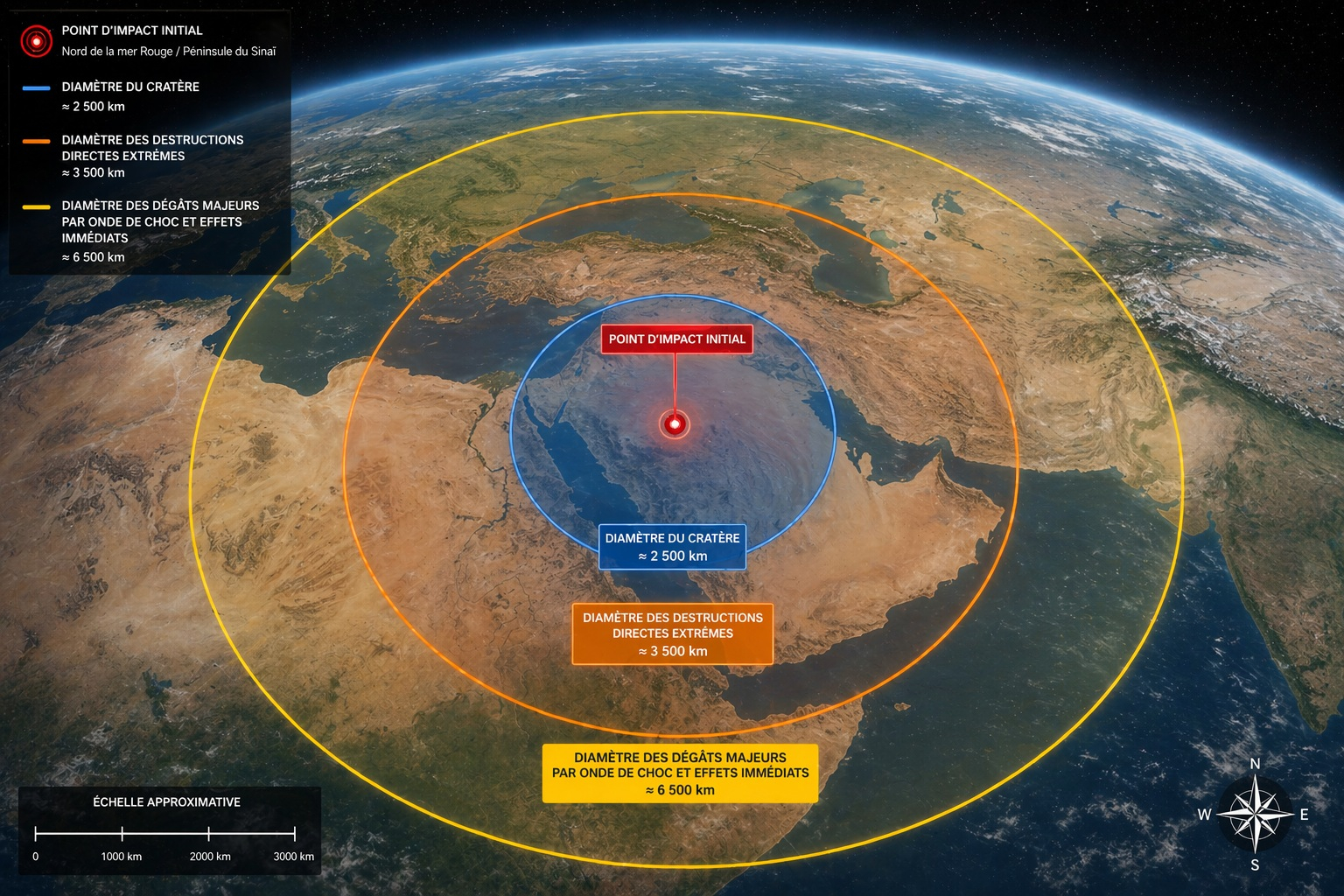 Oui légèrement extrême car vue la taille du cratère, il est fort probable que l'Europe et une bonne partie de l'Asie soient vitrifiées également (onde de choc, incendies, tout ça...)