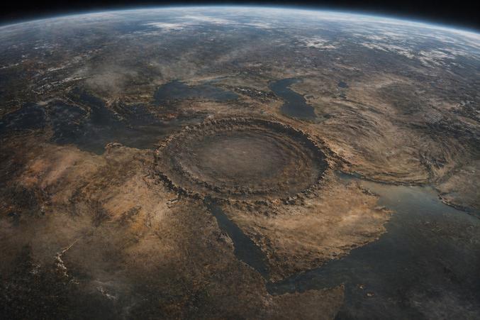 Même la "tsar bomba" (plus grosse bombe atomique théoriquement de 100+ mégatonnes, mais bridée à 57) serait très loin de faire un cratère pareil).