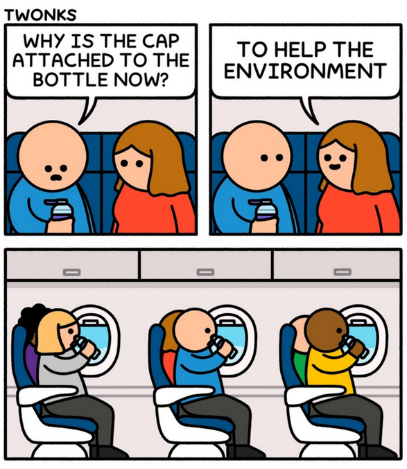 Je déteste cette merde. Je l'arrache quand même sauf que ça fait des esquilles de plastique qu'il faut que j'arrache aussi pour pas m'entailler les mains/bouche. Je n'ai jamais jeté de bouchon dans la nature vu qu'une bouteille est inutile sans.